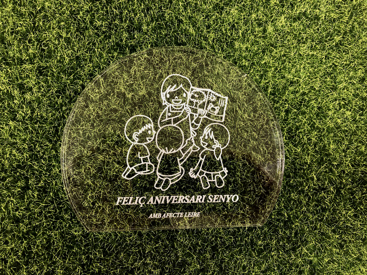 Placa cumpleaños personalizable, ideal para regalar a amigos, compañeros de empresa, clientes. Grabado en metacrilato transparente.